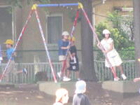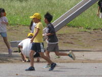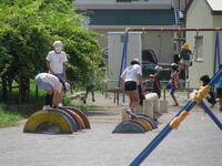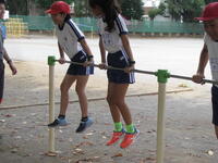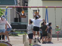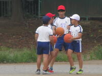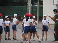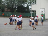 4年生の体育の授業でベースボール型のティー・ボールをやっていました。ティーの上にボールを載せ、そのボールをバッターが打ちます。ピッチャーが投げるボールを打つのとは違って、一見簡単なように思いますが、やってみるとボールをしっかり捉えて、遠くに飛ばすのは案外難しいものです。子ども達は各グループで交代しながらボールを打つ感覚を味わっていました。将来、大谷選手のような世界で活躍するような選手がこの中から出てくるかもしれません!?