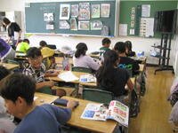 4年生が校外学習に向けて事前学習を行っていました。4年生は9月20日に成田空港と航空博物館を訪れます。その事前学習として、空港のことや飛行機のこと、そして空港の仕事のことなど様々なことを学習しました。ジャンボ機の広さを体験するために実際に椅子を並べて座ってみたり、滑走路の長さなどをクイズにしてみたり・・・事前学習のために、先生が工夫を凝らして準備をしてくれました。子ども達も興味津々、「へぇ~」などの声もたくさん聞こえてきました。校外学習では、学んだことを実際に観て、現地で学んで体験してきたいと思います。とっても楽しい授業でした!