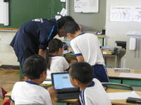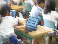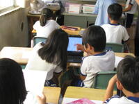 2年生の教室を覗いてみると、タブレットでジャングルの生物を検索中。職場体験学習に来ている中学生もお手伝いしながら、いろいろな生き物を検索していました。調べようとしたとき、すぐに調べられる。知らないことをどんどん知ることができる。そんな環境すばらしい!