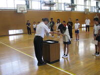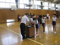 今日のさわやかタイムに2学期の学級委員任命式が行われました。3年生から6年生、そしてゆりのき学級、きらめき学級の新学級委員が体育館に集まり、任命書を手渡されました。2学期は日々の活動はもちろんですが、どの学年も旅行的行事があり、学級委員さんのリーダーシップに期待したいと思います。また、リーダーを支えるフォロアーも各学級で頑張ってほしいと願っています。がんばれ、がんばれ、学級委員!!