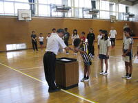 今日から運動部の活動として、ミニバスケットボールが始まりました。10月30日(水)には市内小学校ミニバスケットボール大会が開催されます。1つの目標を大会におきながらも、楽しく体を動かすことを継続していきたいと思います。今日はグランドと体育館に分かれ、基礎練習に楽しく取り組んでいました。
