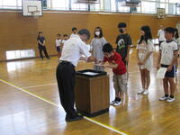 登校時に「おはようございます」と元気なあいさつをしてくれた子ども達。学校に1学期と同様に活気が戻ってきました。夏休み中にロッカーと床が新しくなった教室があったり、トイレのカーテンが新しくなったり、学校も少しずつきれいになっています。始業式では、新しく3名のお友達を紹介し、540名で2学期をスタートしました。また、夏休み中に姉妹都市である能登町との交流会があったことや能登の現状についても子ども達にお知らせしました。能登町の小学生からは、1月の募金や励ましのメッセージに対するお礼のメッセージが届きました。友達やきれいな教室、おいしい給食など、”いつもの学校生活”に感謝し2学期頑張っていきましょうと話しました。