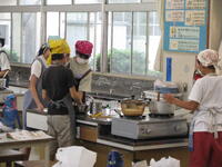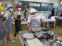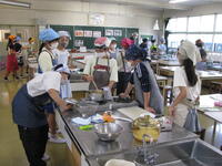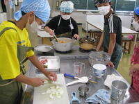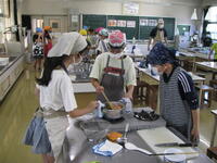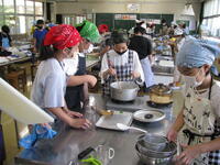 5年生の家庭科の授業で調理実習を行っていました。メニューはカレーライスです。今月末に林間学園を控えている5年生。林間学園でも作る予定のカレーライスを作ってみました。しかも鍋でご飯を炊くというすご技も。林間学園当日も鍋でご飯を炊き、カレーも作ります。もちろん薪で火を起こしてです。家庭科の授業ではガスコンロで火加減もバッチリですが、薪でやったらどうなるか・・・。今回のできは、どの班も最高でした。名料理人ばかりでした。林間学園当日も外で食べる最高のカレーライスをめざしてがんばってほしいと思います。