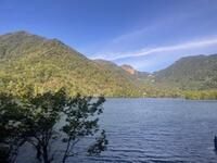 日光は、朝から快晴でした。ホテルから見える湯の湖です。