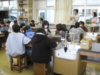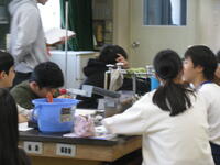 理科の授業で地層のでき方を実験をもとに考えていました。校庭から採取してきた土を実験器具を通して水で流してみると、砂の粒の大きさによって地層が現れます。また、瓶にためた泥水を振ってみてると、やはり粒の大きさの違いによって地層が現れてきます。何万年もかかってできた地層について、実験を通してそのでき方を学習し、様々な場所の地層のでき方を想像すると面白いと感じました。6年生良い学習をしています。