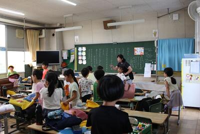 初日なので、手には大きな荷物をもつ子もいました。宿題を大事にもってくる子もいて、頑張ったことが伝わりました。