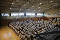 10人の選手を全校で応援し、送り出しました。頑張れ流北!