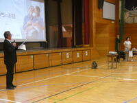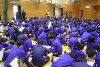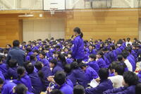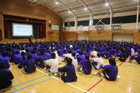 災害時に事前にできる備えについてや、もしもの時に中学生ができることについて講話がありました。