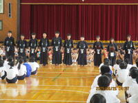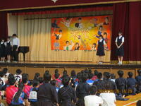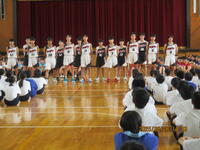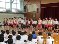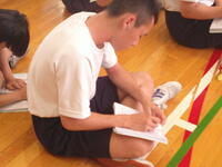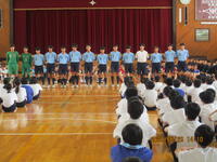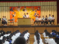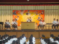 本日、5,6時間目に葛北大会激励会を行いました。葛北大会に出場する部活動の選手たちが、各部活動の持ち時間である2分間を目一杯使い、選手の紹介や大会への意気込みを発表しました。その後、美術部が製作した横断幕の紹介と説明が行われ、全校応援団を中心に選手たちにエールが送られました。発表を聞いている生徒たちの姿勢も大変立派でした。