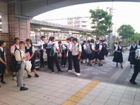 いよいよ1年生の校外学習のスタートです。昨日まで心配していた天気も、今日の朝は晴れました。本日も、たくさんの保護者の方が、運河駅までの各場所に立ち生徒の安全を見守ってくださいました。ありがとうございました。駅で集合時間を待つ生徒たちは、期待に満ちあふれた笑顔を見せてくれています。清水公園では、午前中に飯盒炊さん、午後には、フィールドアスレチックを予定しています。