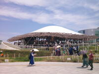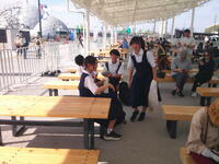 時間通りに大阪万博会場に到着しました。天気は晴天。強い日差しですが、大屋根リングの下は心地の良い風が吹き、万博内には様々な所に休憩スペースもあり、生徒達も休憩しながら見学をしていました。