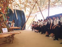 無事、清水公園に到着しました。生徒たちは全員元気です。始まりの会の実行委員の話では、校外学習のスローガン「一心協学」にも触れ、校外学習の成功に向けての思いが伝えられました。これから、スタッフの方からのレクチャーを受けつつ、飯盒炊さんにチャレンジです。グループで協力して美味しいカレーライスの完成を目指します。