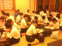 午後には、農家の方のお手伝いにも少しづつ慣れてきた様子で、農作業を楽しんでいる生徒や、手際よく作業を終えて、川へ遊びに行ったり、山登りをしたりと各体験場所でとても貴重な経験をさせていただきました。農家の方との関わりを通して、林間学校スローガンにある「和衷共同」を体感できる活動になりました。農村体験を終えホテルへ帰ったあとは、夕食を食べてキャンプファイヤーを実施する予定です。