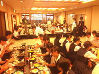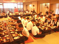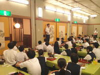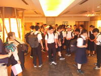 大阪万博の会場から京都の宿泊ホテルまで、班ごとに公共交通機関で移動しました。無事に全班がホテルに到着することができました。生徒に万博の感想を聞くと、「海外の人と交流ができて良かった」「予定通りに動けなかったので、明日の班別行動につなげたい」など、様々な話を聞かせてくれました。見知らぬ土地での活動を通し、疲れた様子もありますが、2日目も頑張るぞという雰囲気が伝わってきました。夕食後、入浴と反省会を行い、1日目終了となります。