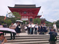 天気は曇空です。蒸し暑さはあるものの直射日光にさらされることなく、班別行動を進められています。生徒たちはタクシーで京都の神社仏閣をまわっています。昨日と同様に班ごとでの活動となりましたが、タクシー運転手や街中で出会った職員へ元気にあいさつをしたり、時間を意識し先を考えて行動したりと、普段学校生活で頑張って取り組んでいることが京都でも発揮されました。