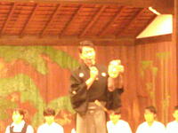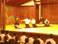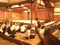 この後生徒たちは大江能楽堂に集合し、能の鑑賞と体験を行います。