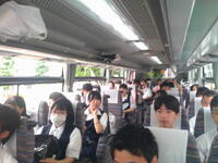 バス内ではレク部会が準備したバスレクとガイドさんの話でとても盛り上がりました。道中の生徒たちは谷間を渡る橋の高さに驚きの声が上がったり、山藤に感動したりしていました。高速道路の上田菅平インターチェンジ付近では曇り空でしたが、長野独特の地形を見ることができ、浅間山も雲がかかっていましたが見ることができました。開校式と昼食を終え、到着時は曇り空でしたが、昼食後、日がさしてきました。気温は爽やかな風が吹き、過ごしやすいです。予定通りオリエンテーリングに学年全員元気にスタートしました。