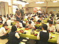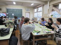 配膳をてきぱきとこなし、「いただきます」をして、給食を食べている間に、栄養士の先生から、給食について、栄養について、詳しい説明を聞きました。給食ができるまでの行程の細やかさや工夫の一つ一つに「へえ~」と声をあげながら、楽しそうに食べてくださいました。