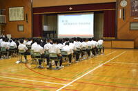 6月20日(金) 3年生は、明日からの修学旅行に向けて、朝、旅行用荷物をトラックに積み込み、3時間目には事前集会を行いました。