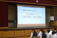 午前は1年1組、2年2組、3年1組で天野先生に道徳の模範授業をしていただきました。午後は教職員研修を行い、道徳の授業づくりについて学びました。今後、他学級でも担任による「自分を大切にする学習」を実施する予定です。