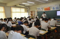 10月29日、名古屋学院大学の准教授、天野幸輔先生による「自分を大切にする学習」が行われました。1年1組と2年3組で模範授業をしていただきました。
