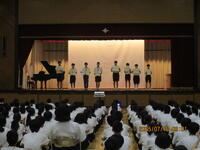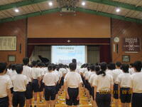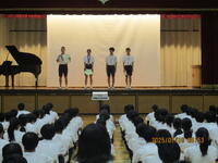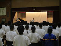 7月18日(金)1学期末全校集会を行いました。校長先生や生徒指導の先生の話を真剣に聞いている姿がとても立派でした。