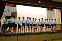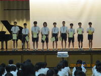 また、全校集会の前には表彰報告を行いました。ステージ上にあがった生徒は堂々と発表することができました。今後部活動だけでなく各教科でも作文やポスターなどの取り組みがあります。ぜひ様々なことに挑戦してほしいと思います。