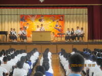 学年主任の堂免先生も、班活動向上キャンペーンについて振り返るとともに、学年のスローガンを改めて確認しました。