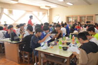 清水公園のバーベキュー場で飯盒炊さんを行いました。生徒は、かまど部会、カレー部会に分かれて、カレーライスを作りました。スタッフの方の話を真剣に聞き、一生懸命調理をする姿が見られました。スタッフの方より「いい生徒さんですね。」という言葉もいただきました。おいしいカレーライスが出来上がり、会話も弾む楽しいお昼の時間となりました。少しお米が柔らかかったり、水分が多く、カレースープ風になったグループもありましたが、「おいしい!」と食べていました。自分たちで作ったものは格別なようです。