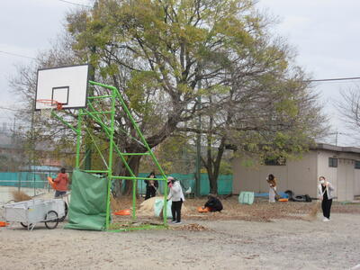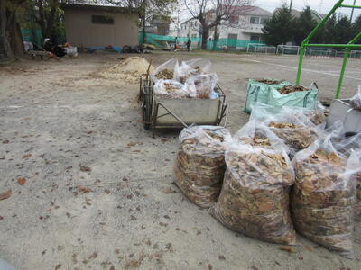 体育倉庫前にある落葉樹からの落ち葉が大変な量でした。今日は、寒い一日でしたが、集まってくださった保護者の方が、落ち葉を一掃してくださいました。きれいな校庭を保ちたいと思います。ありがとうございました。