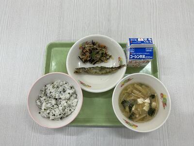 ・牛乳 ・わかめごはん ・ししゃもの磯辺揚げ