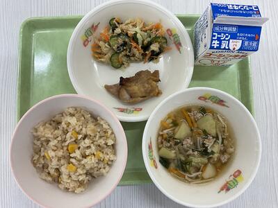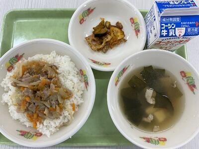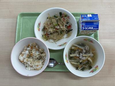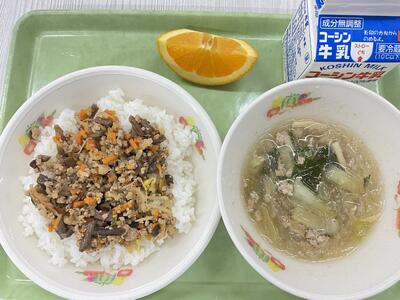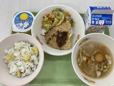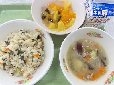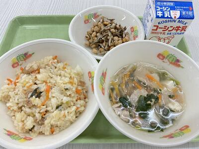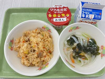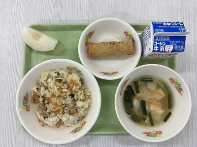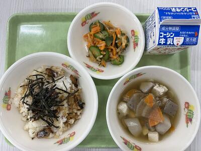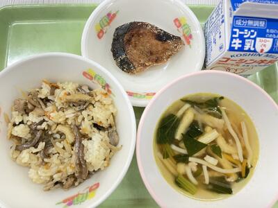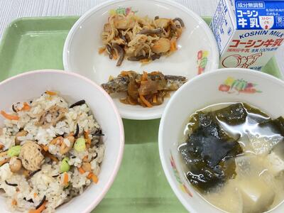 ・牛乳 ・鶏ごぼうごはん ・ししゃもの磯辺揚げ