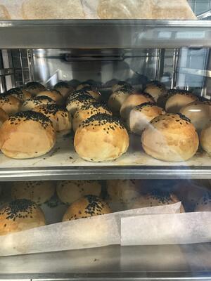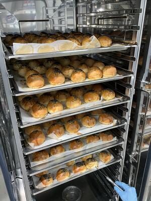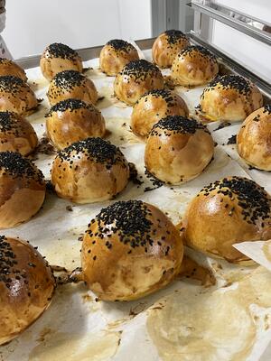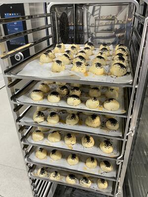 天板に並べて、卵を塗り、ごまをふりかけオーブンへ