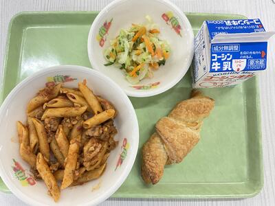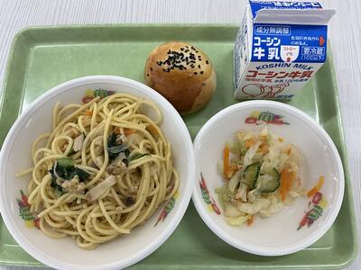 ・牛乳 ・小松菜とベーコンのスパゲッティー