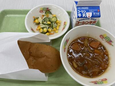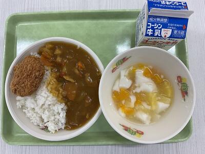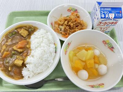 2学期最初の給食は子どもたちに大人気のカレーライスとフルーツポンチです