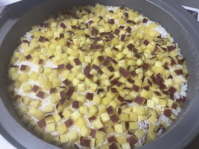 さつまいもと粉、牛乳を混ぜて生地を作っていきます