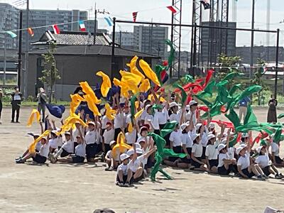 あたたかいご声援、ありがとうございました✨1年生にとって、初めてのスポーツフェスティバル!!2年生のお兄さん、お姉さんの姿を見ながら、練習に励んできました。スポーツフェスティバルを終えて教室に戻ると、「もう1回やりたい!!」「楽しかった!!」など疲れを感じさせない声がたくさん聞こえてきました✨一休みした後には、5・6年生の演技を見にいき、再び、「ジャンボリーミッキー」をお兄さん、お姉さんたちと踊りました✨