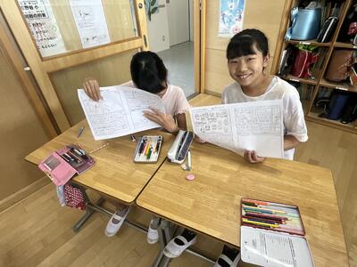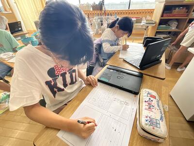 スポーツフェスティバルから一夜明け、5年生は教室でふり返りの作文に取り組みました。