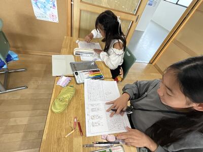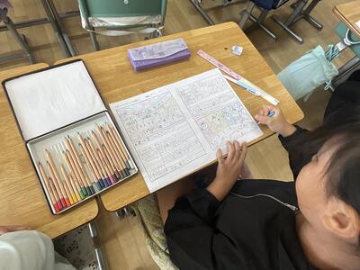 子どもたちは、フェスティバルの日を思い出しながら、一文一文ていねいに書き進めていました。中には「リレーでバトンをうまくつなげたことがうれしかった!」、「ダンスで友だちと息を合わせてがんばった!」など、チームで協力した思い出を書いている子もいました。