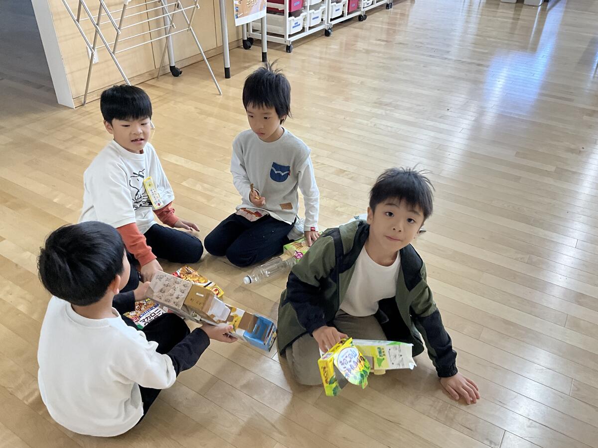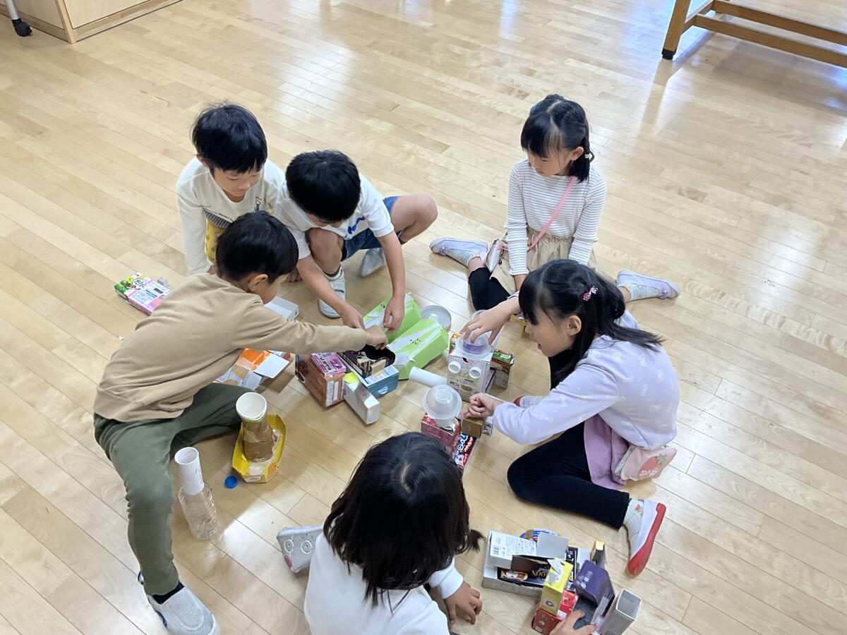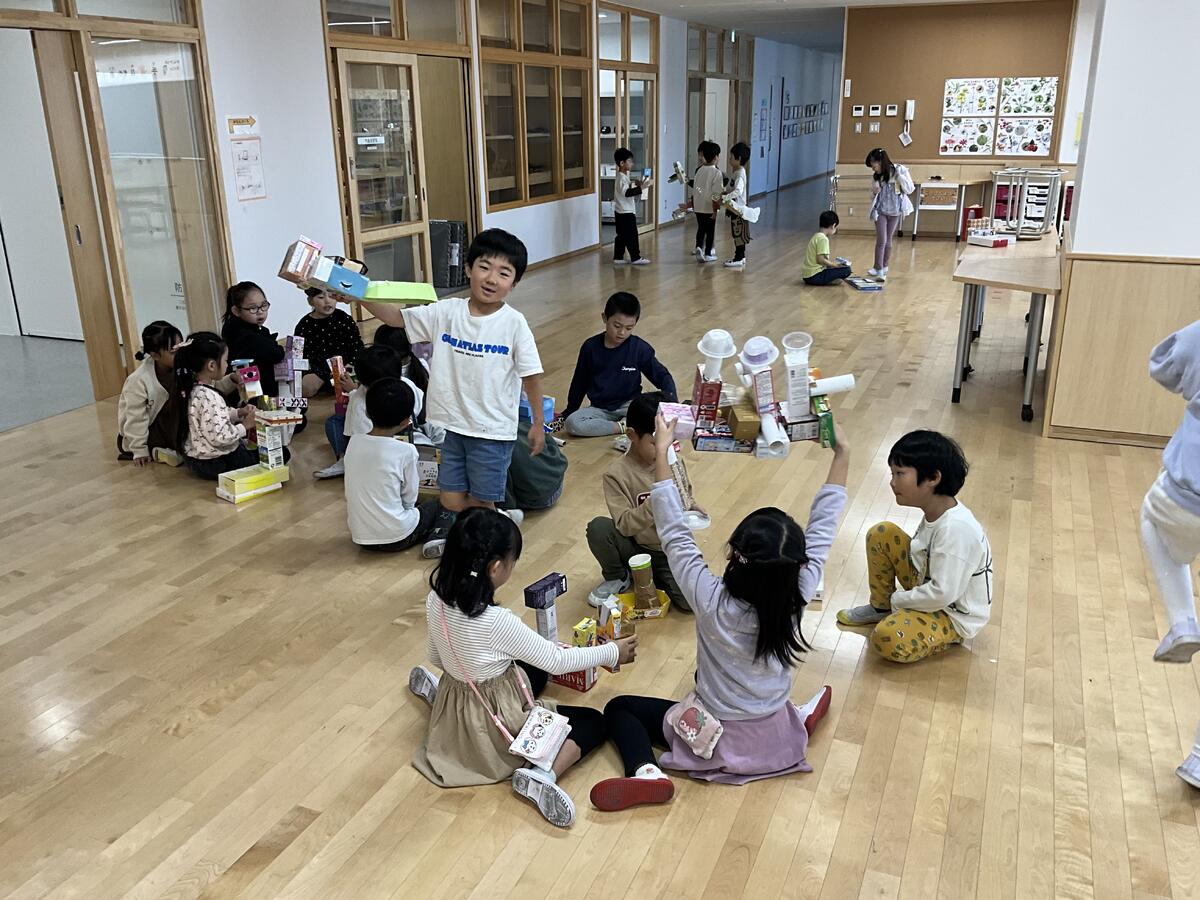 子どもたちは、思いのままに箱を組み合わせて、作品を仕上げていました✨