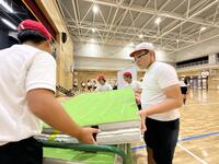 体育館では、当日の概要、食物アレルギー等について説明します。