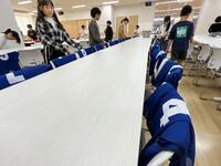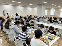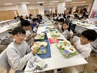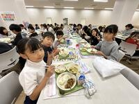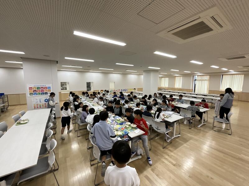 この日は、ランチホールでペアやグループになって一緒に給食を食べました。