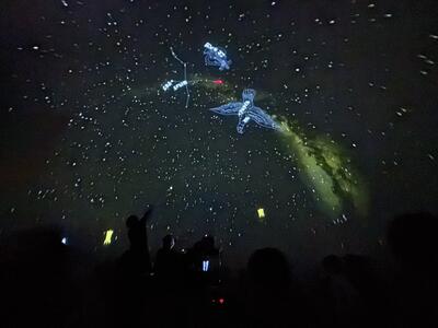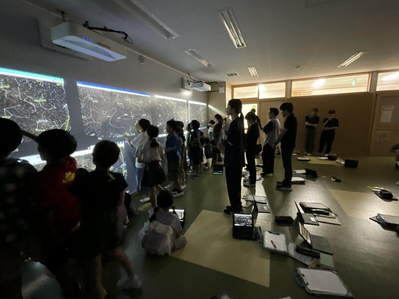 子どもたちは「わあ、きれい!」「星が動いてる!」と目を輝かせながら、星の瞬きや星座の形を見つけていました