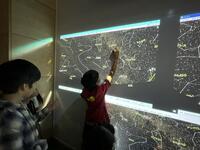 未来の教室の全面ホワイトボードのスクリーンに北極星を中心とした夜空を映し出すと、教室は小さなプラネタリウムに