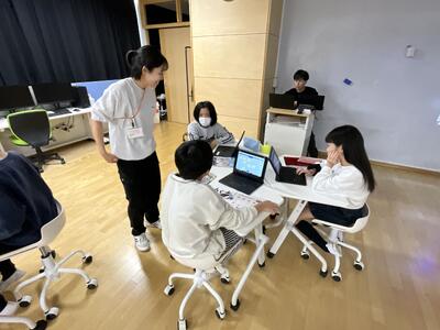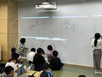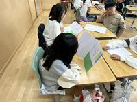 授業ではグループになって「駅から図書館へ行くには?」「スーパーはどこですか?」など、実際に街を歩くような会話を行いました。
