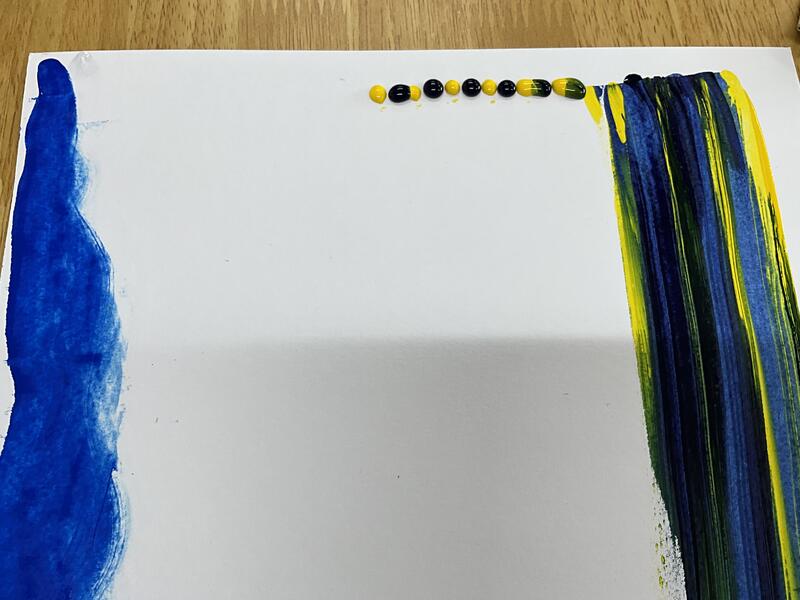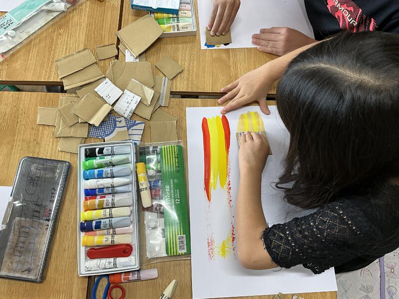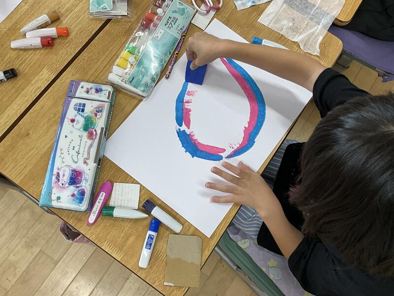今日の図工は、いつもと違って筆なしで絵の具を使いました!