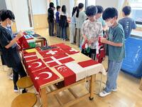 5・6年生が家庭科の時間を活用して「万国旗」「ゼッケン」「ハチマキ」を洗ってくれました。