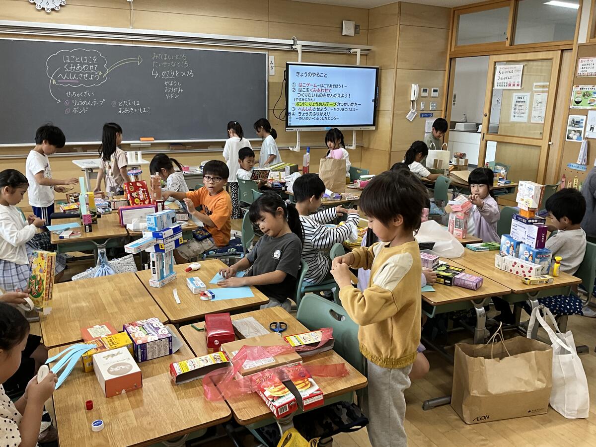 図工の「はことはこをくみあわせて」の学習では、さまざまな形や大きさの箱を組み合わせて、思い思いに作品を作りました✨夢中になって作っている表情は、とてもかっこいいものです✨芸術の秋ですね。