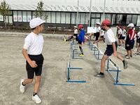 5・6年生の体育では、ハードル走の学習が始まりました。