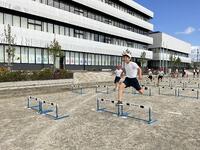 1時間目の授業では、まずはハードルのない状態で40mを全力で走ってみました。風を切って走る心地よさを感じながら、自分の走りのリズムやスピードを確かめました。